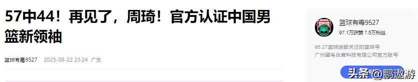 篮球有毒9527(57中44!再见了,周琦!官方认证中国男篮新领袖2025.08.22)