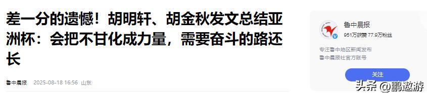鲁中晨报(差一分的遗憾!胡明轩、胡金秋发文总结亚洲杯:会把不甘化成力量,需要奋斗的路还长2025.08.18)